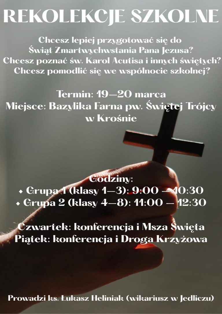 W dniach 19–20 marca nasza szkoła uczestniczyła w rekolekcjach szkolnych organizowanych przez parafię pw. Trójcy Świętej w Krośnie (Krosno Fara). Rekolekcje poprowadził ks. Łukasz Heliniak. Ich głównym bohaterem był św. Carlo Acutis – młody człowiek, [więcej]